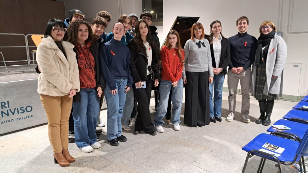 Durante l’incontro, l’autrice ha presentato il suo libro Un piano per rinascere, un’opera intensa che intreccia musica e testimonianza, raccontando un percorso di liberazione e ricostruzione interiore attraverso l’arte. Attraverso le sue parole, pacate ma profonde e mai retoriche, ha invitato i ragazzi a riflettere sul valore del rispetto, sull’importanza di riconoscere e contrastare ogni forma di violenza e sul potere trasformativo della creatività. Le domande degli studenti hanno mostrato interesse e sensibilità verso le tematiche affrontate. La sua testimonianza è stata seguita da un intervento chiaro e arricchente delle Operatrice dello Sportello Antiviolenza. Al termine della serata, l’autrice ha emozionato il pubblico con diverse esecuzioni al pianoforte di brani da lei composti.