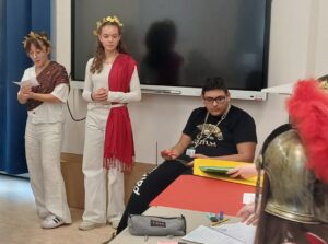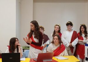 La classe ha trasformato l’aula in una piccola curia romana, dando voce ad argomentazioni storiche, giuridiche e morali, e mostrando una notevole capacità di ricostruire il contesto dell’epoca. Attraverso il confronto diretto, gli studenti hanno potuto comprendere non solo la complessità delle decisioni politiche nell’antica Roma, ma anche come il dibattito pubblico sia uno strumento fondamentale per interpretare e valutare i problemi della società.