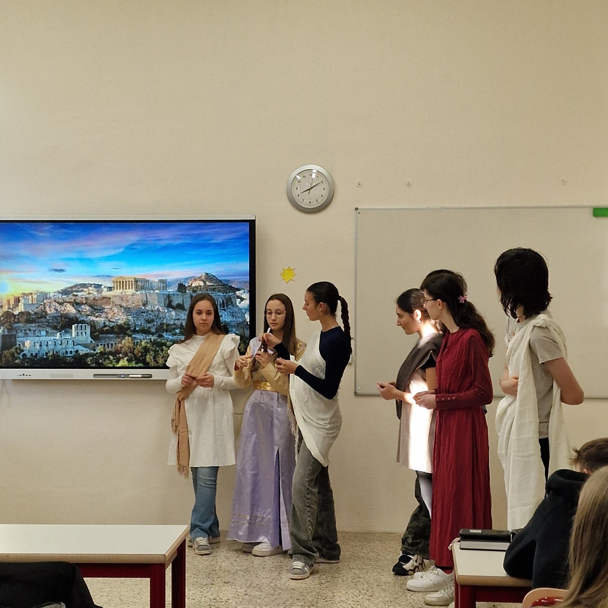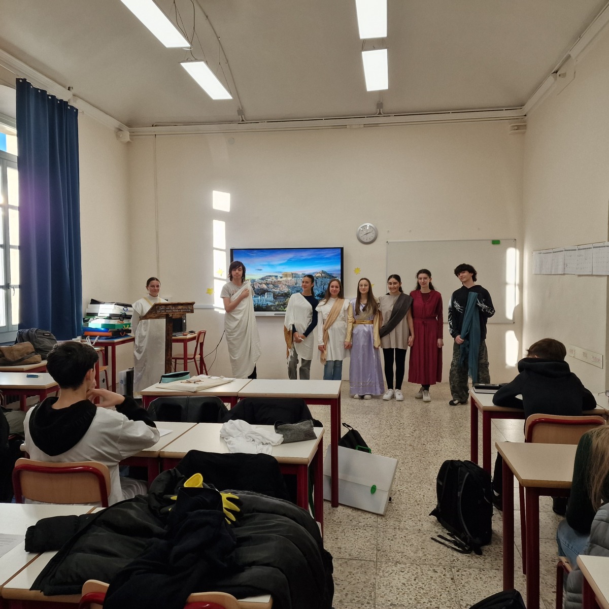 La classe 1AST del Liceo Scientifico Tradizionale, guidata dalla docente Claudia Cravero, ha in questi giorni trasformato l’aula in una piccola agorà ateniese, dando vita a un coinvolgente role play teatrale dedicato ai tre grandi legislatori dell’antica Atene: Dracone, autore delle prime leggi scritte e noto per la loro severità; Solone, riformatore che abolì la schiavitù per debiti e pose le basi di una maggiore equità sociale; Clistene, considerato il padre della democrazia ateniese per aver ampliato la partecipazione politica dei cittadini.