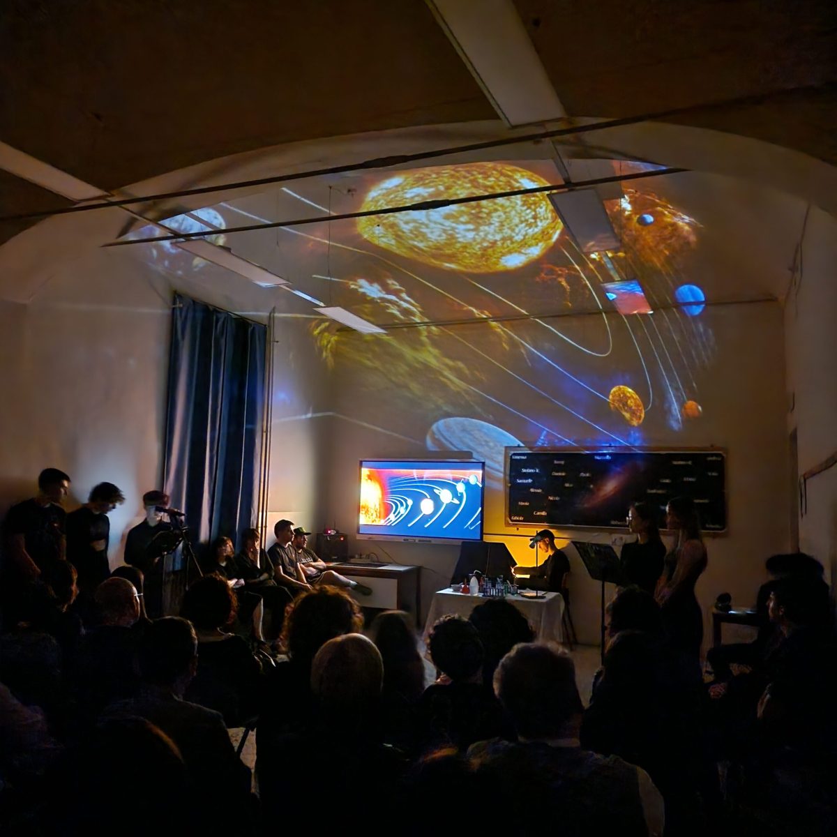 L’entusiasmo del pubblico è stato palpabile. Apprezzati in modo particolare la serietà del lavoro svolto, l’organizzazione impeccabile e la capacità di affrontare un tema complesso come il cosmo — tra pianeti, esperimenti scientifici, frattali, forme matematiche in natura e riferimenti letterari — con un linguaggio accessibile ma mai banale. Il percorso si è snodato attraverso momenti diversi e ben integrati: dimostrazioni, letture, interventi musicali e scene teatrali hanno costruito un racconto coinvolgente, capace di unire rigore e divulgazione.