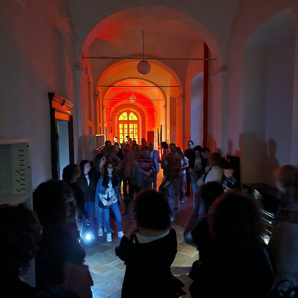 Un ruolo fondamentale è stato giocato anche dall’allestimento degli spazi: dal giardino medievale ai corridoi, fino alle aule, ogni ambiente è stato valorizzato attraverso un sapiente uso di luci e musiche, creando un’atmosfera suggestiva che, complice la dimensione notturna, ha esaltato la bellezza dell’edificio storico e il lavoro dei ragazzi.