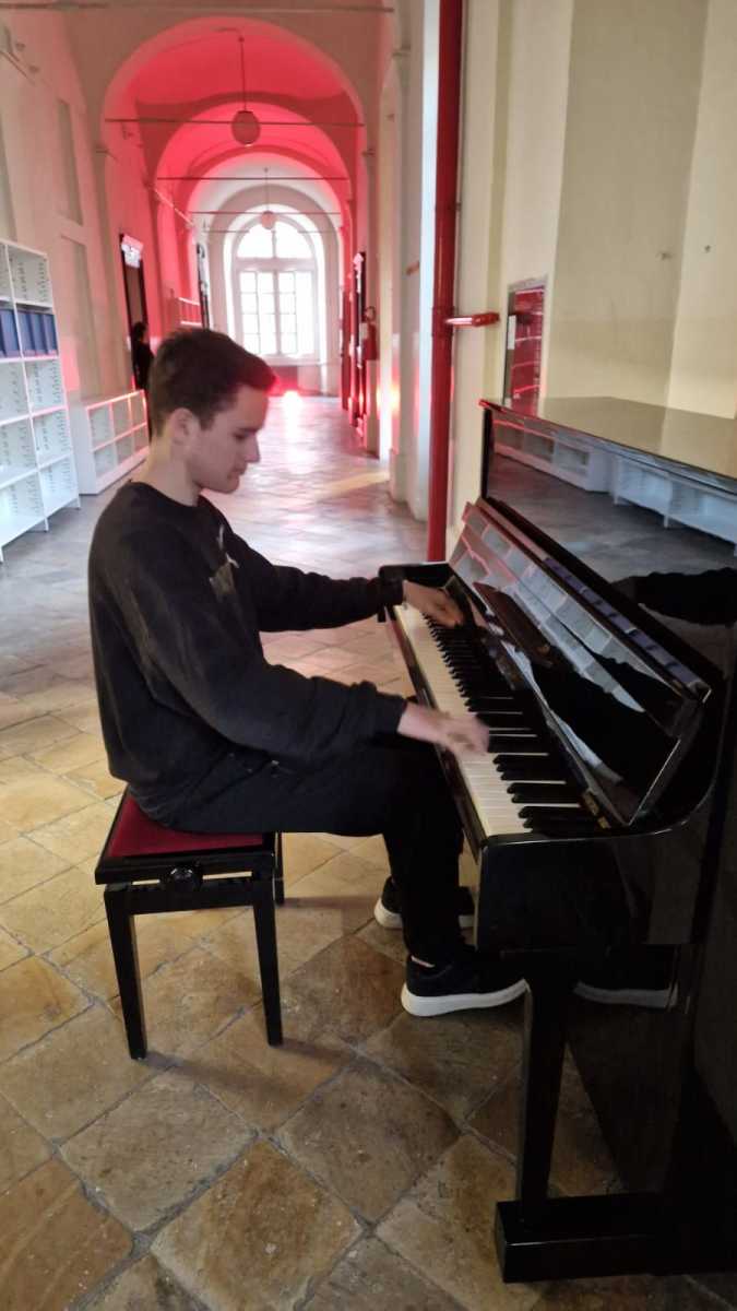 Un ruolo fondamentale è stato giocato anche dall’allestimento degli spazi: dal giardino medievale ai corridoi, fino alle aule, ogni ambiente è stato valorizzato attraverso un sapiente uso di luci e musiche, creando un’atmosfera suggestiva che, complice la dimensione notturna, ha esaltato la bellezza dell’edificio storico e il lavoro dei ragazzi.