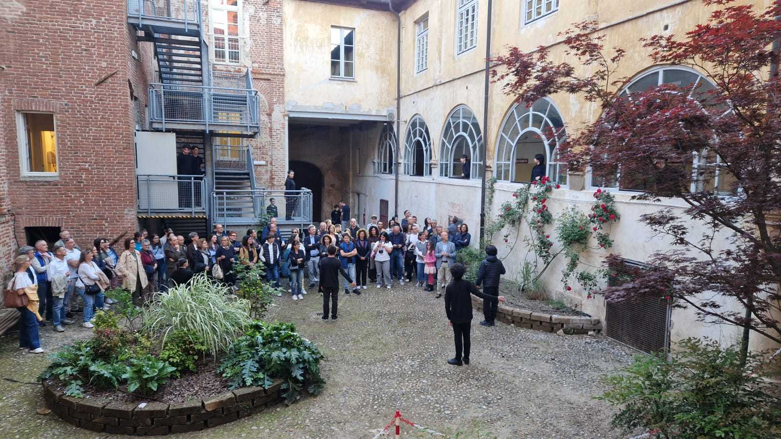 Un ruolo fondamentale è stato giocato anche dall’allestimento degli spazi: dal giardino medievale ai corridoi, fino alle aule, ogni ambiente è stato valorizzato attraverso un sapiente uso di luci e musiche, creando un’atmosfera suggestiva che, complice la dimensione notturna, ha esaltato la bellezza dell’edificio storico e il lavoro dei ragazzi.